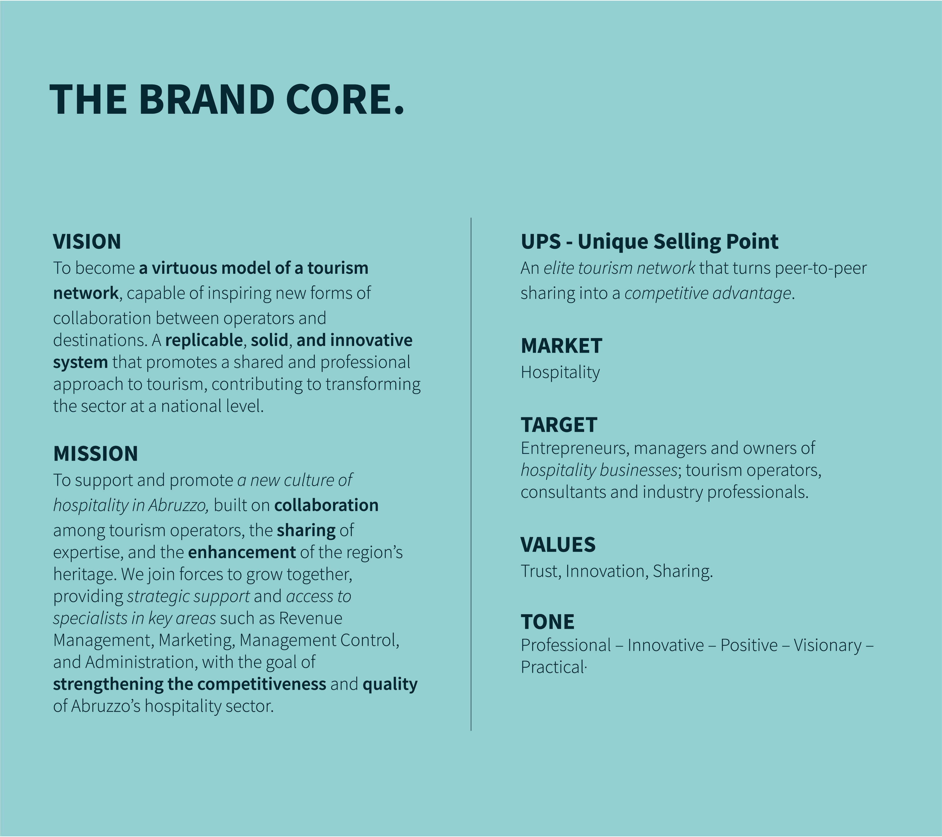 The project delivers a contemporary visual identity that reflects innovation, collaboration, and the unique character of Abruzzo’s tourism professionals, strengthening the sense of community and shared purpose within the network.